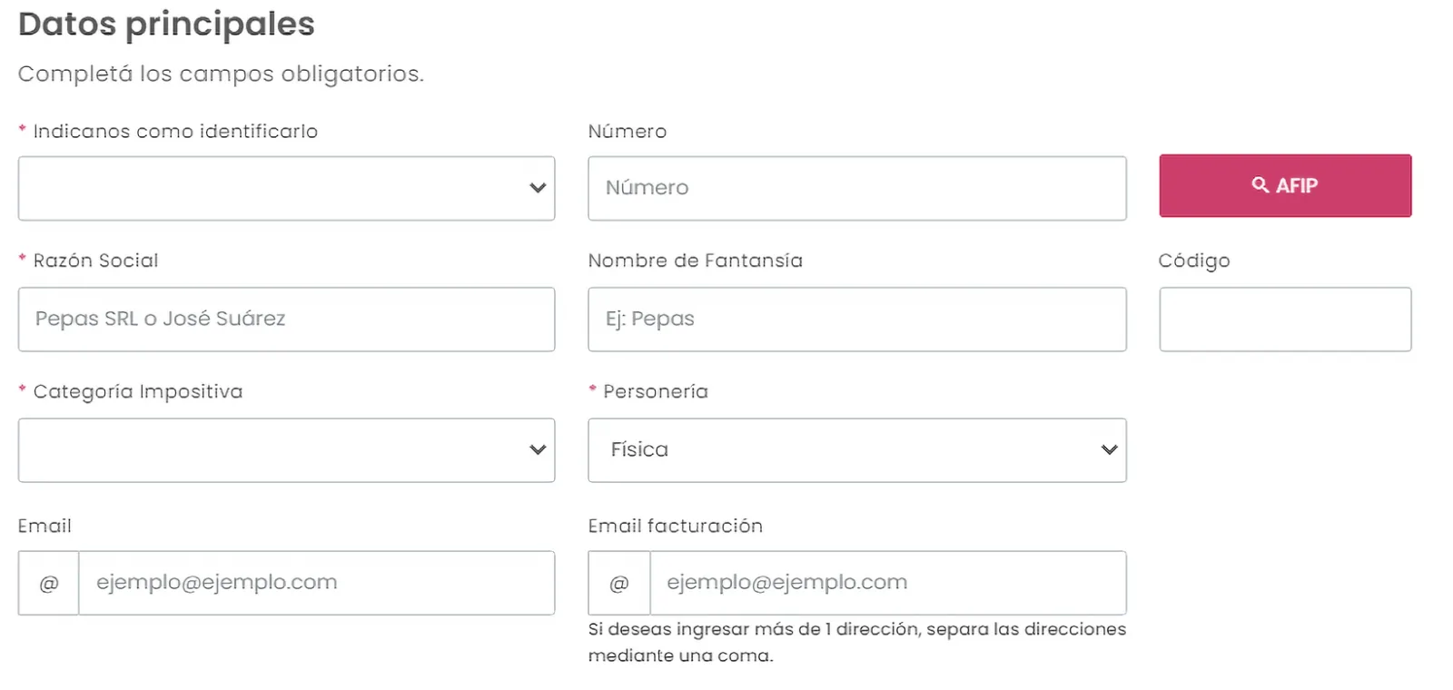 Seleccioná el tipo de comprobante que desees emitir y completá los datos requeridos. Todos aquellos con un * en su campo, son obligatorios.