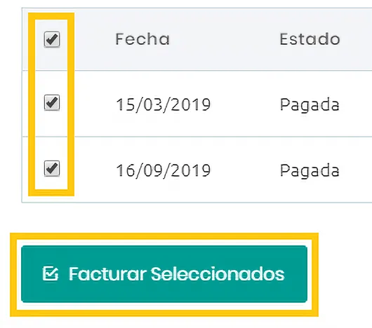 Tildar el recuadro que aparece del lado izquierdo de “Fecha” y seleccionar aquellas ventas que quieras facturar. Luego presiona “Facturar Seleccionadas”