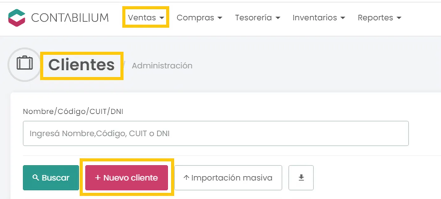 Hacer click en “Ventas” y luego, en el apartado “Clientes”.